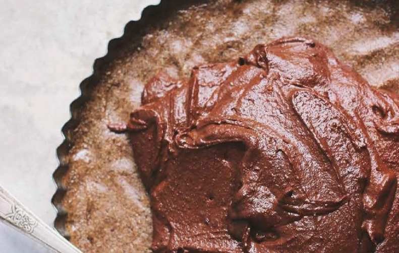 Line an 8-inch tart tin with parchment. Press the crust mixture into the bottom using the back of a spoon and set aside. Then combine 225g of the cashews (soaked for 30 mins in boiling water), the remaining 3 tbsp maple syrup, cacao powder and coconut milk and blend in a food processor until totally smooth. Pour the filling into the crust and refrigerate for at least two hours before serving. Can also be topped with berries or bananas for a fruity twist.