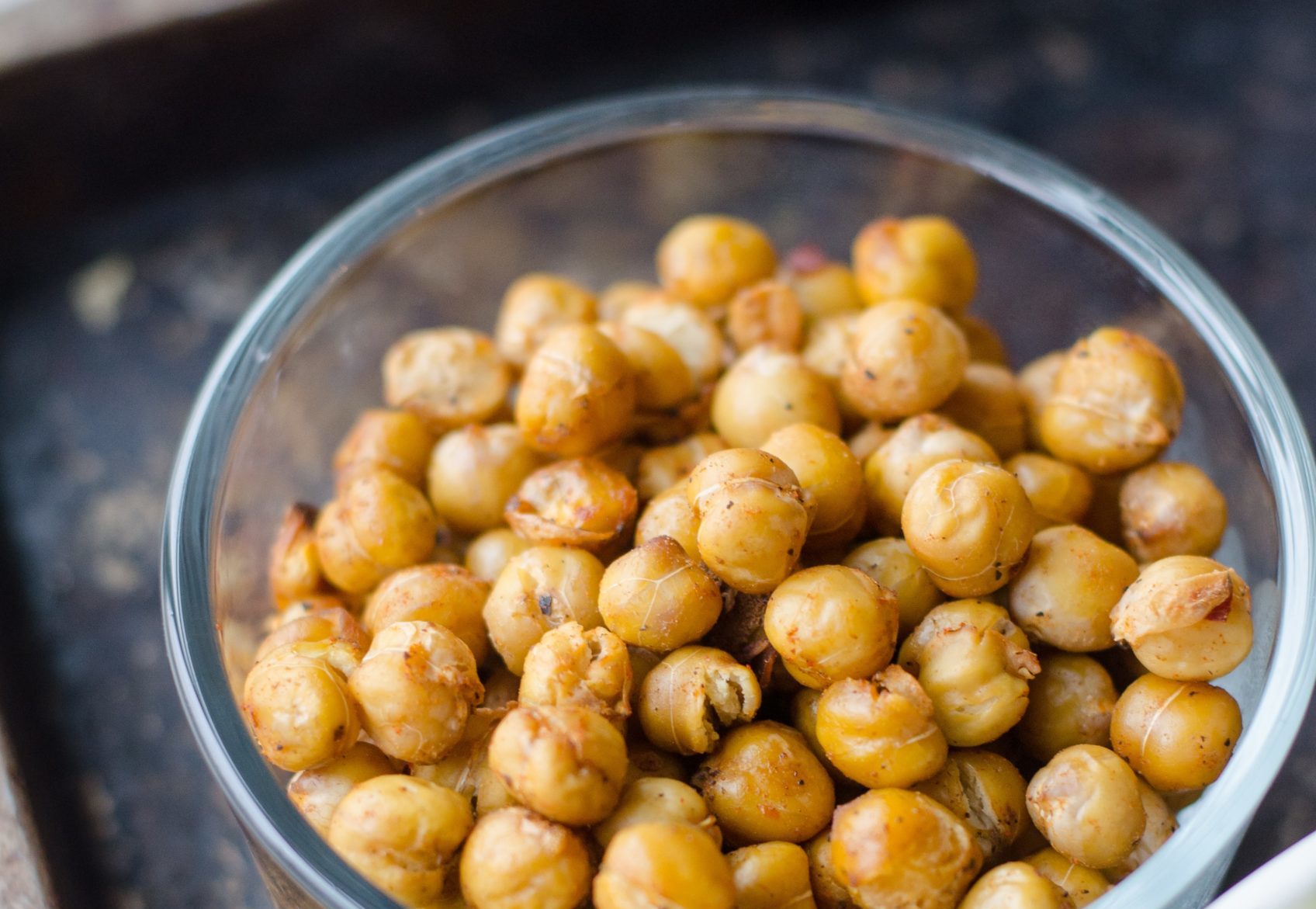 3. Place the chickpeas in a single layer in a roasting pan or on a cookie sheet with sides.